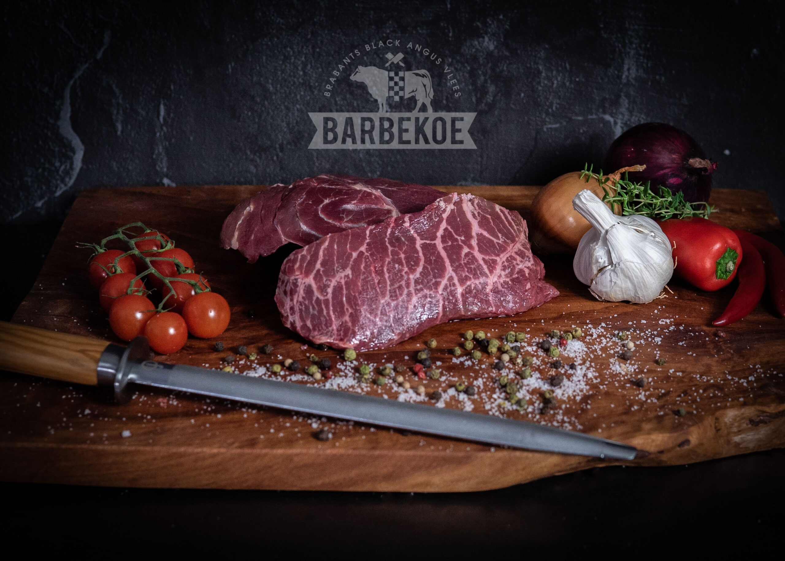 Het totaalgewicht van de sucadelap (Black Angus vlees) is circa 400 gram voor €9,80